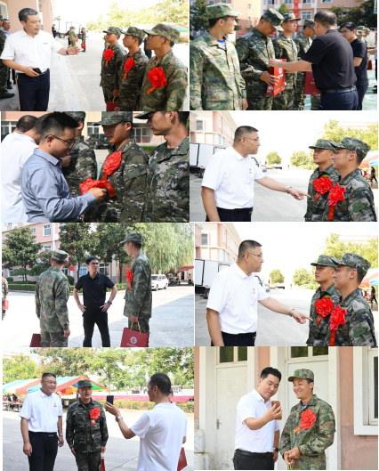 党委学工部副部长、征兵工作站站长姚斌,医学院党委书记、行政副院长王平安,传媒学院党委书记、行政副院长江俊瑞,建筑与艺术设计学院党委书记、行政副院长王飞,会计与金融学院党委副书记刘斌,人文与国际教育学院党委副书记韩斌,智能科学与信息工程学院党总支书记、行政副院长王林,为各自学院的新兵送上入伍纪念品及祝福。