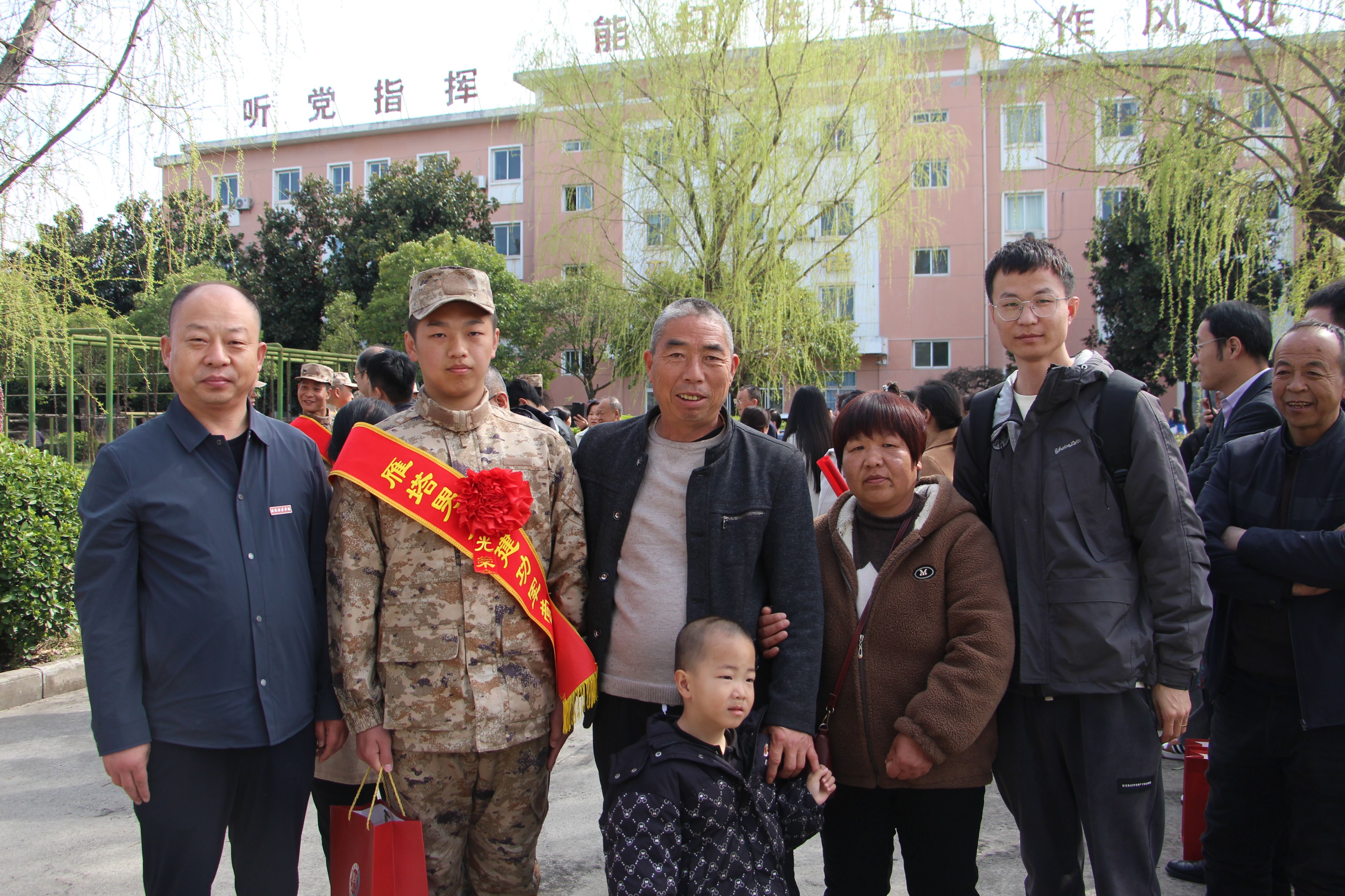 我校入伍新兵身着戎装,胸戴红花,精神抖擞。他们表示到部队后,一定会安心服役,刻苦训练,争当优秀士兵,不辜负家学校、老师和家人的殷切期望。