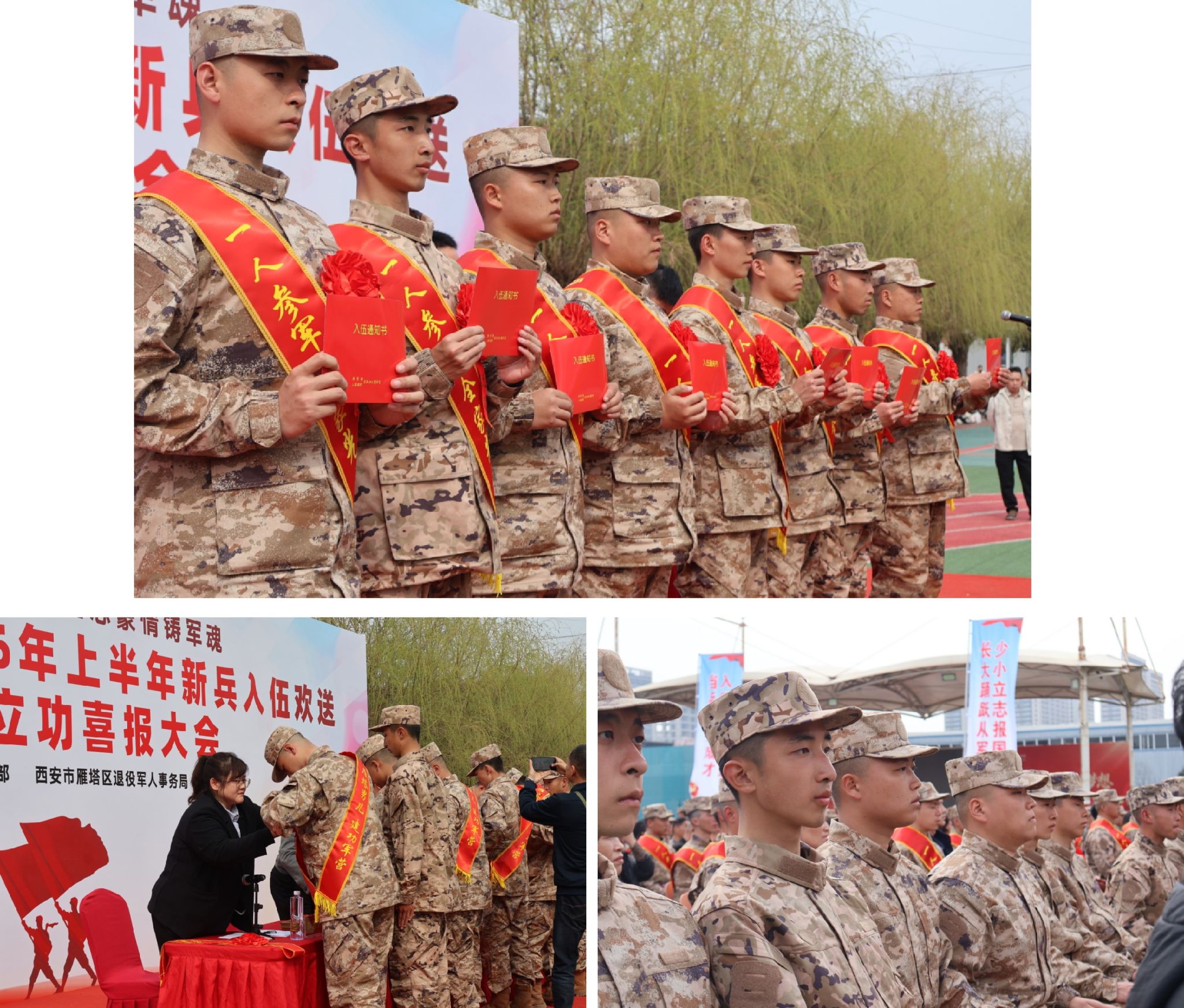 我校传媒与设计学院学生佟德鑫,在本次雁塔区新兵入伍欢送暨庆送立功喜报大会上,代表全区入伍新兵发言。他表示,作为新时代青年,要生逢盛世,更应勇担使命。今后,将牢记保家卫国的初心使命,把个人理想融入国防事业,以坚定的理想信念筑牢思想根基;将严守军队铁的纪律,绝对服从命令、听从指挥,锤炼过硬作风;将发扬不怕苦、不怕累的精神,刻苦训练、潜心钻研,努力提升军事本领,敢闯敢拼、勇当标兵;将始终心系母校、情系故里,牢记母校的教诲,不负家乡的期望,用热血与汗水书写青春无悔的军旅答卷,争取早日建功军营、载誉归来,为母校争光、为家乡添彩!