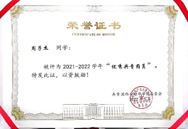 12.2023年6月,在2022年度西安培华学院“一站式”学生社区建设工作中被评为“抗疫先进个人”称号