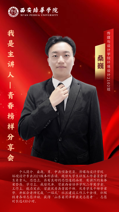 为进一步加强学风建设和文明行为养成教育,创建优良学风,树典型、立标杆、重帮扶,学习发展中心特举办“心有榜样 行有力量”之青春榜样经验分享会系列活动;充分发挥朋辈“树旗、导航、激励、互助”作用,汇聚榜样引领力量,聚焦学业发展规划和学习生活经验分享,3月28日晚上19:00-20:00,“心有榜样,行有力量”之青春榜样分享会第二期如期而至。本次分享会邀请到三位优秀培华学子,他们分别是大学生社区工作委员会主席桑巍、传媒与设计学院团委学生兼职副书记闫星慧、西安培华学院国旗护卫队团支部书记陈慧;他们分别从学业、社会实践、学生工作等各方面进行汇报分享。