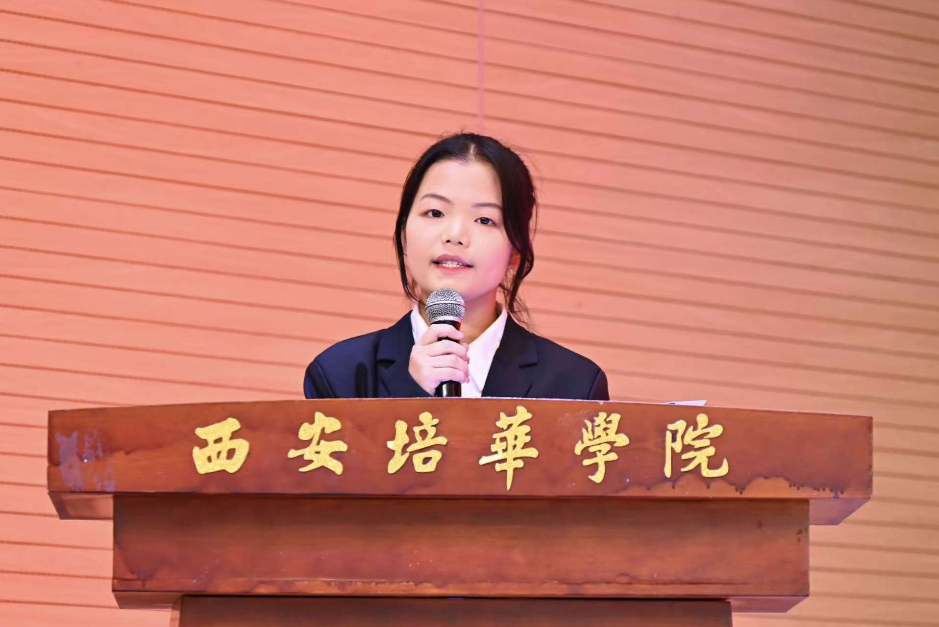 大一干事代表罗佳瑜同学的演讲作为充满活力与无限可能的新鲜血液,成功加入了学生服务中心助理团。对于这个助理团的每一位成员而言,都肩负着重大的责任和使命学生服务中心助理团,是一个与学生紧密相连的团队,它像是一座沟通的桥梁,贯穿在学校和学生生活的方方面面,她清晰而坚定地表达了每一位助理团成员应有的担当。