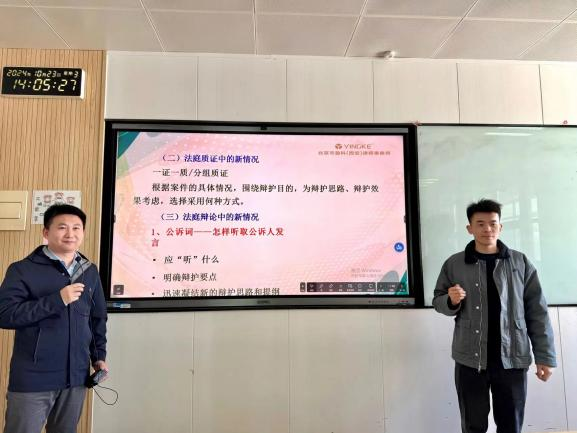 课堂教学是整个教学活动中的中心环节,也是学风建设的主阵地。为进一步规范教学管理各项工作,法学院聚焦教学改革“双师同堂”协同育人新探索,不断将特色教学改革工作推向深入,充分发挥了“教师+律师”的“双师模式”优势,将习近平法治思想与提升同学们的实务能力紧密结合。
