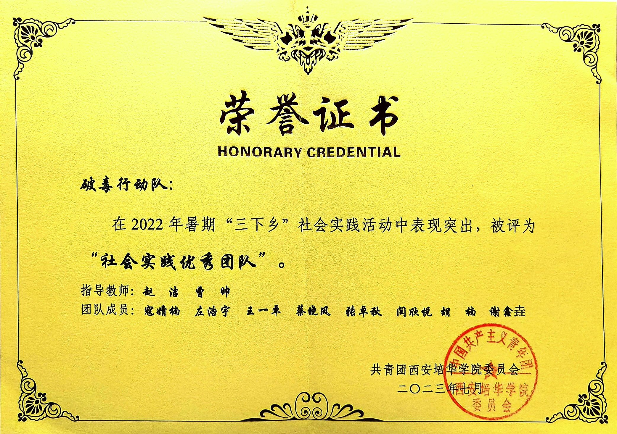 12.2023年所在团队获得暑期“三下乡”社会实践活动“优秀团队”;