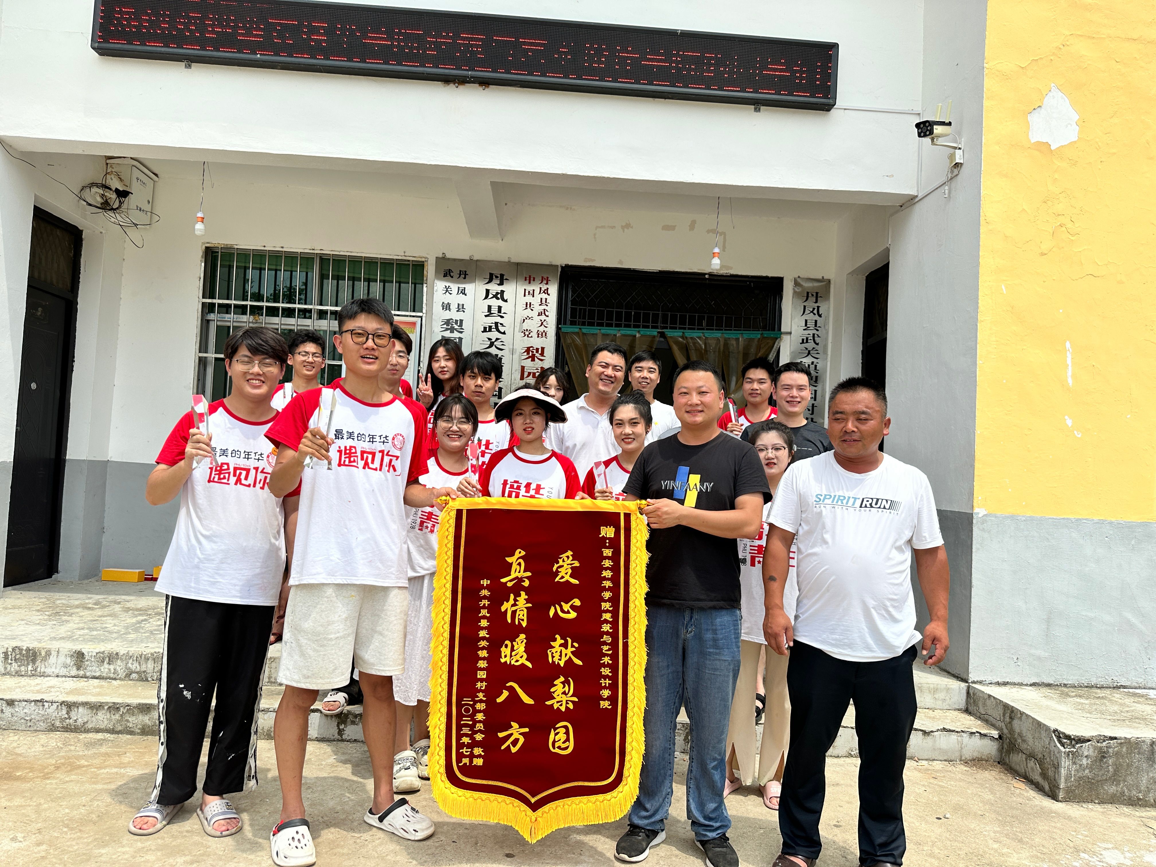 2022年慕钟远同学参加了在长安区西樊村开展的“绘梦青春·与乡同行”暑期三下乡社会实践,结合村庄特色以及专业特长,绘制24节气图,受到当地村民的一致好评,所在项目被列为校级重点项目,被评为2022年西安培华学院社会实践标兵团队。23年暑假慕钟远同学组织班级14名同学参加暑期三下乡社会实践,在商洛丹凤县武关镇梨园村开展“青春逐艺梦,画笔绘新乡”主题墙绘活动,在当地墙体绘制百米长卷,助力乡村振兴,也收获了丰富的实践成果,当地政府的表扬、村民的肯定。同时,结合“三下乡”地点丹凤县,参加陕西省红色旅游创意策划大赛,并经由学校审批推荐至省赛。
