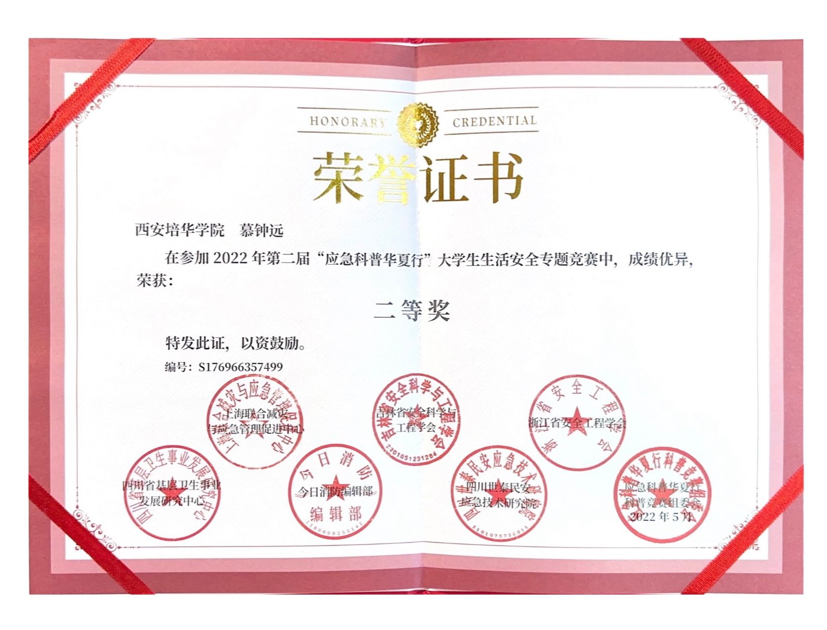13.2022年12月获得“应急科普华夏行”大学生生活安全专题竞赛二等奖;