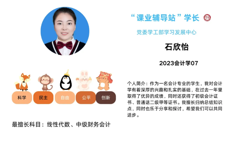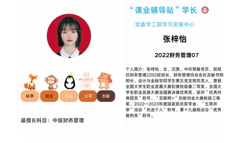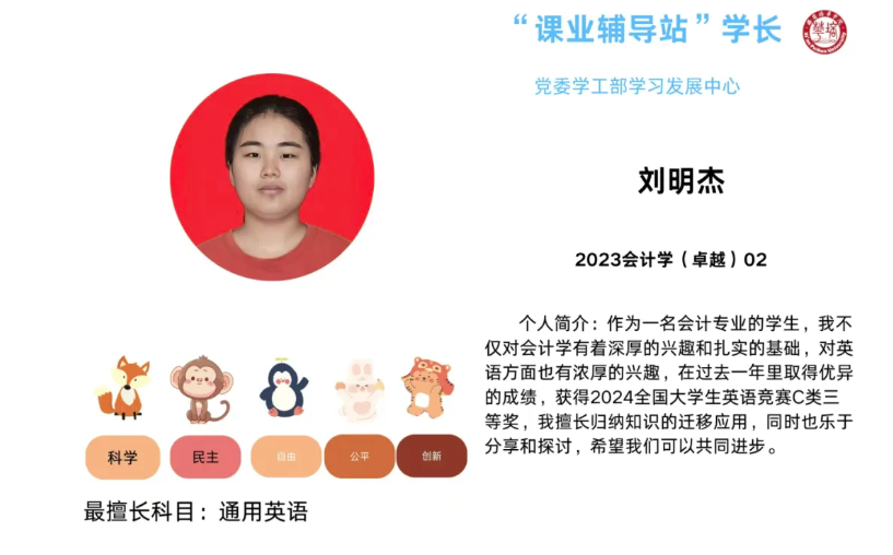 ●“课业辅导站”学长: