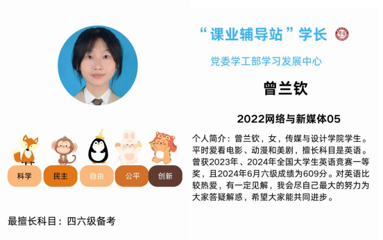 ●“课业辅导站”学长: