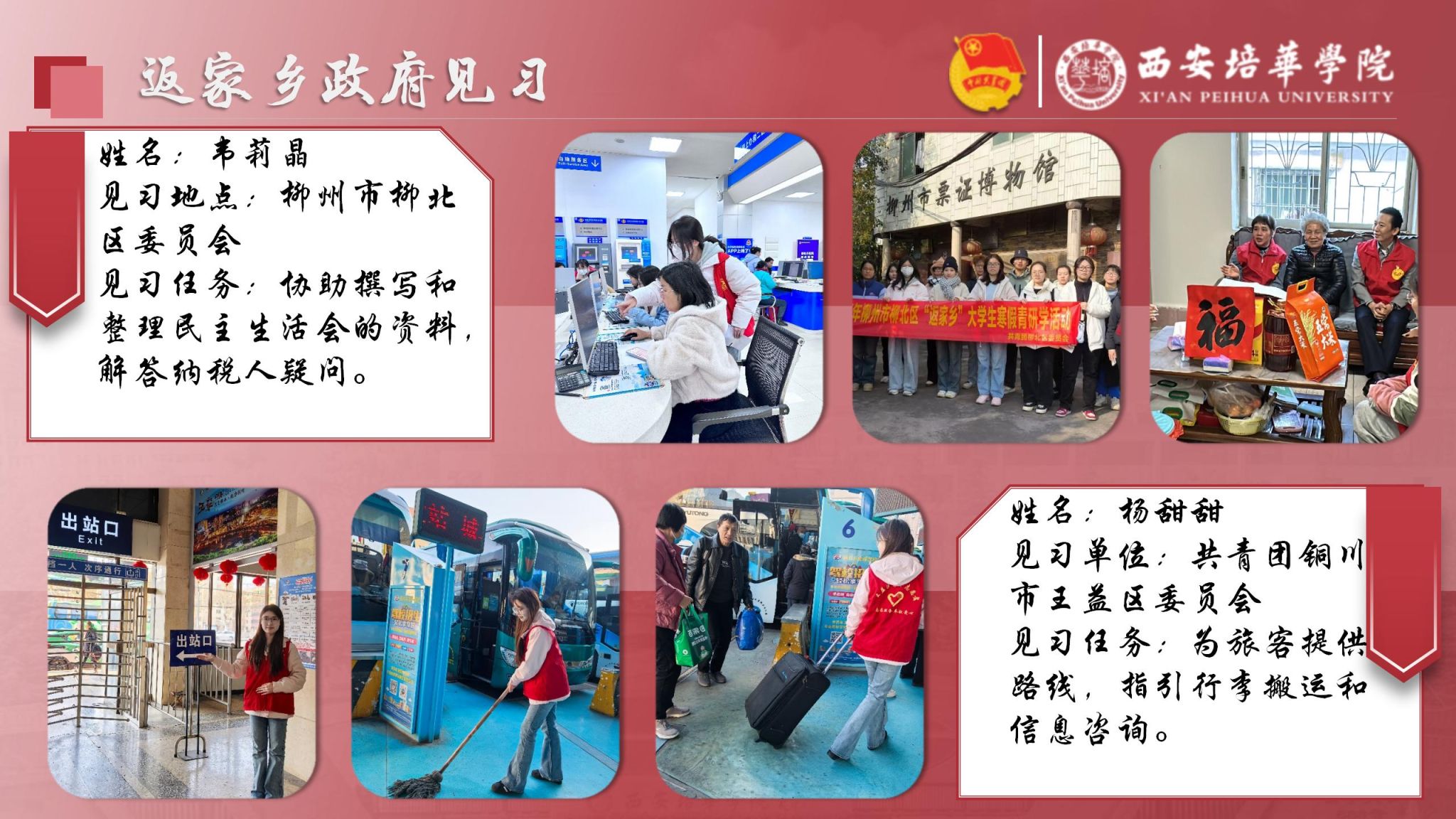 组织学生寒假返乡回访高中母校,向恩师汇报求学收获;通过座谈宣讲等形式,推介培华办学特色、招生政策等内容,讲好培华故事;同时寻访优秀校友,挖掘其先进事迹,以榜样力量激励在校学子笃行奋进。