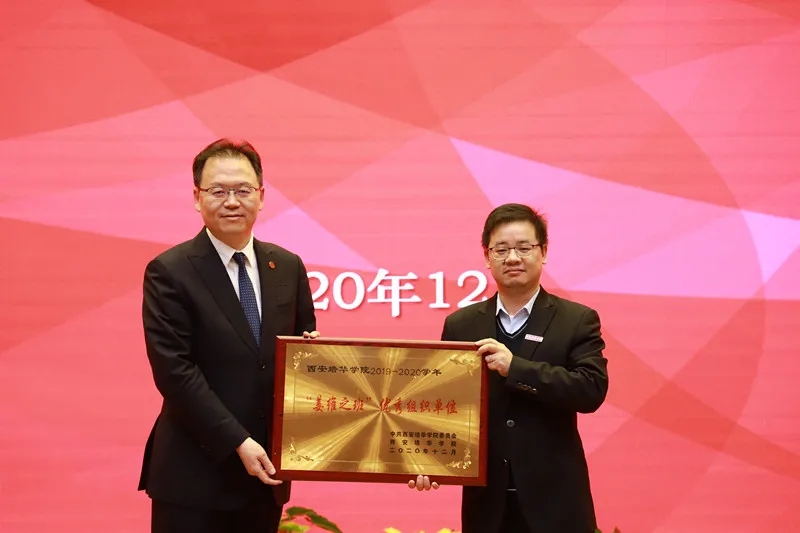 理事长姜波博士为获得“姜维之班”荣誉称号的班级颁奖