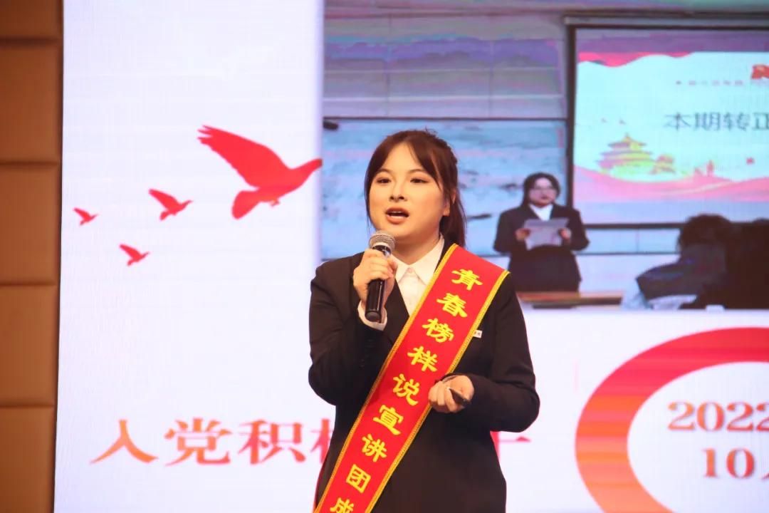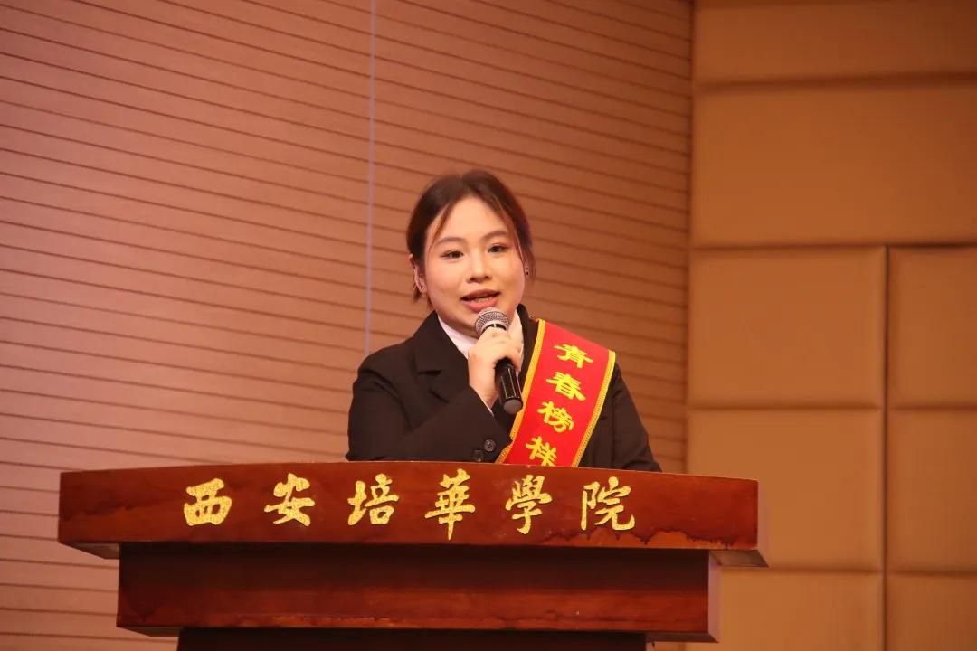 △党委学工部副部长杨媛老师宣读《关于组建西安培华学院首届国家奖学金“青春榜样说”宣讲团暨开展“感恩奋进 闪耀青春”主题系列宣讲活动的通知》《关于聘任朱家臻等43名同学为西安培华学院首届国家奖学金“青春榜样说”宣讲团成员暨朋辈帮扶学业导师的通知》