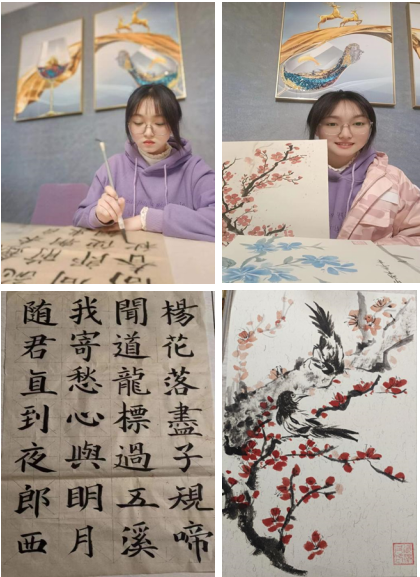 张泸丹同学说:“通过本次活动,我更加坚定了自己对中国传统文化的热爱。在众多艺术形式中毛笔字和国画对我有着特殊的吸引力。毛笔字不仅是一种技艺,更是一种修身养性的方式。每次提笔,都仿佛与古人在进行一场心灵的对话。国画则是对自然与生活的赞美,每一笔、每一墨都蕴含着深厚的历史底蕴和艺术情感。每一次练习都是一次心灵的洗礼。我深知艺术无止境,但每一次进步都离不开持之以恒的努力。通过这次活动,我更加坚定了自己对于毛笔字和国画的热爱。同时,我也认识到自己在技巧和创意方面还有很大的提升空间。未来,我希望能够更深入地探索更多的可能性,将中华文化传承下去。”