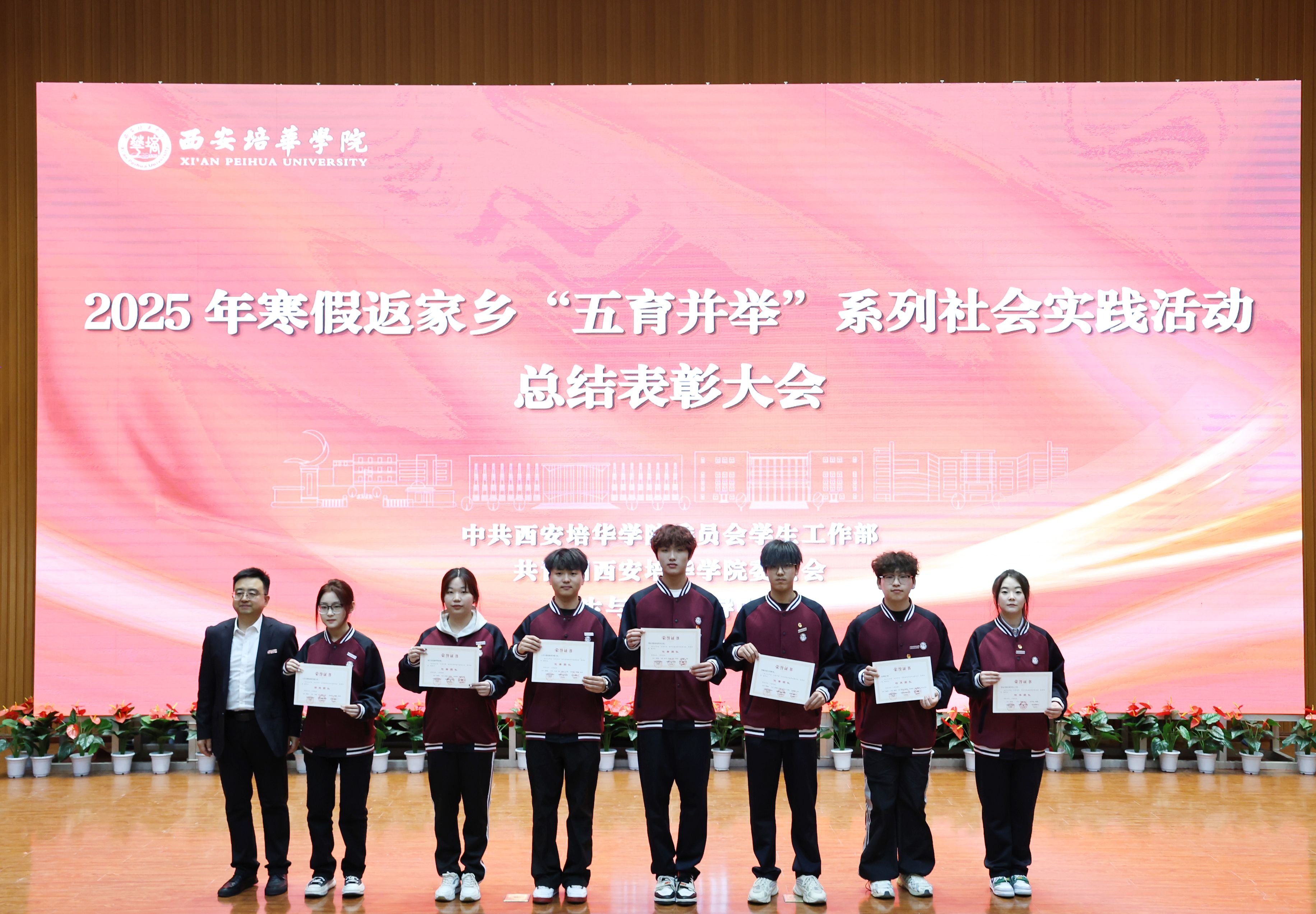 校团委书记董莹老师宣读《西安培华学院关于表彰2025年寒假“五育并举”返家乡系列社会实践活动优秀组织单位、示范(标兵)团队、优秀指导教师、先进个人的通报》