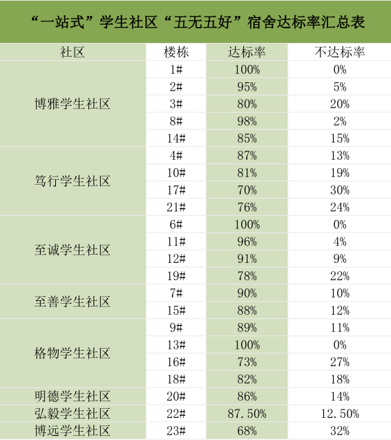 以学生社区楼栋为单位进行达标率公示: