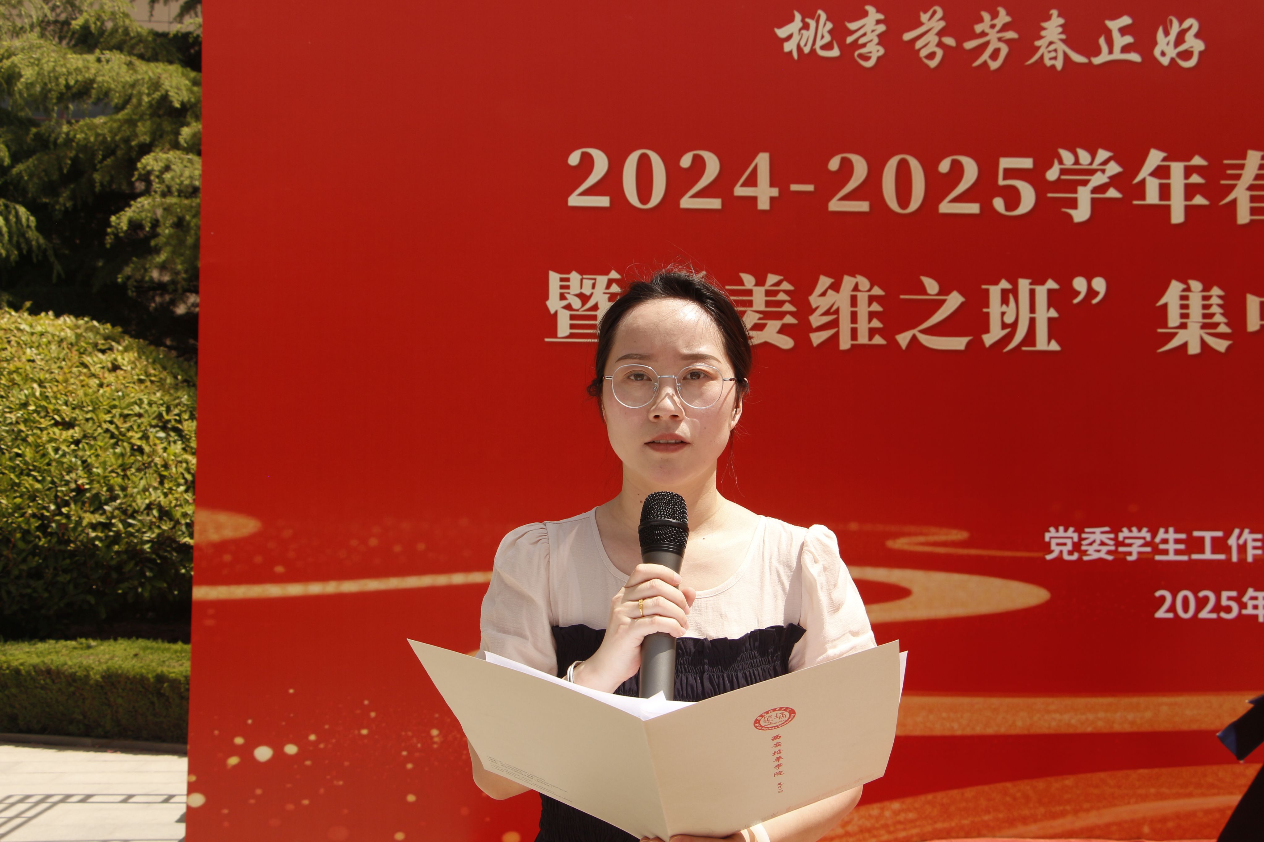 校团委罗娜宣读《关于开展2024-2025学年“姜维之班”集中创建工作的通知》