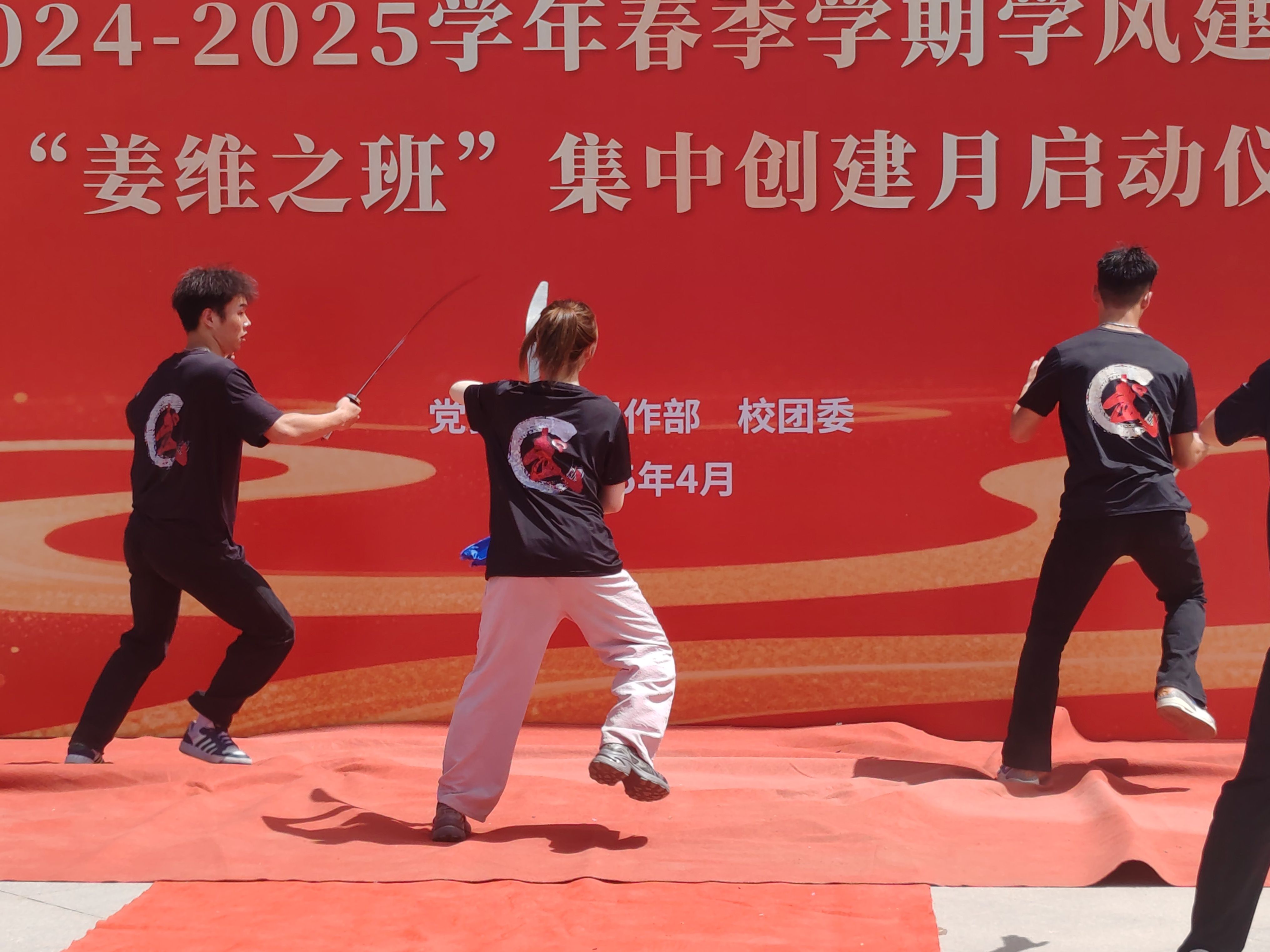体育学院同学们带来的单刀表演,身姿矫健敏捷、沉稳大气,配合刀的挥舞,极具观赏性与实战性;单刀作为传统武术的核心器械之一,映射着中华文明对力量、智慧与美的追求。