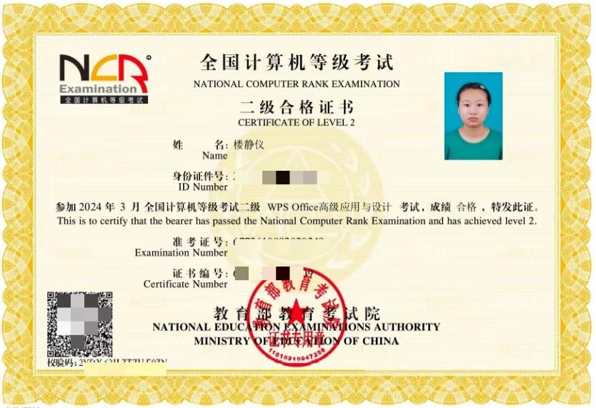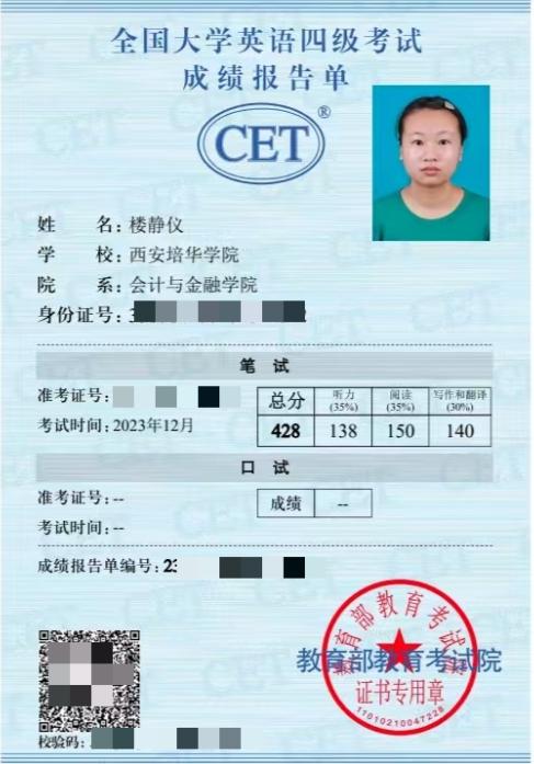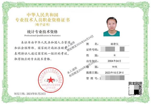 在2022-2023学年,她开始搜罗能以专科生身份参加并与自身专业相关的考试信息,并对自己的大学生活进行了一个合理的时间规划,利用每天的课余时间进行备考,一步一脚印,一张张准考证上记录着她进步的足迹,提前做好的规划和持之以恒的行动让她一次性先后取得了普通话证书,会计专业技术资格(初级)证书,统计专业技术资格(初级)证书,英语四级证书,全国计算机等级考试二级合格证书以及AMAC基金从业人员资格考试成绩合格证明;在2023-2024学年,她的专业成绩位居年级第二,均分90.14分。未来路还很长,但问耕耘。