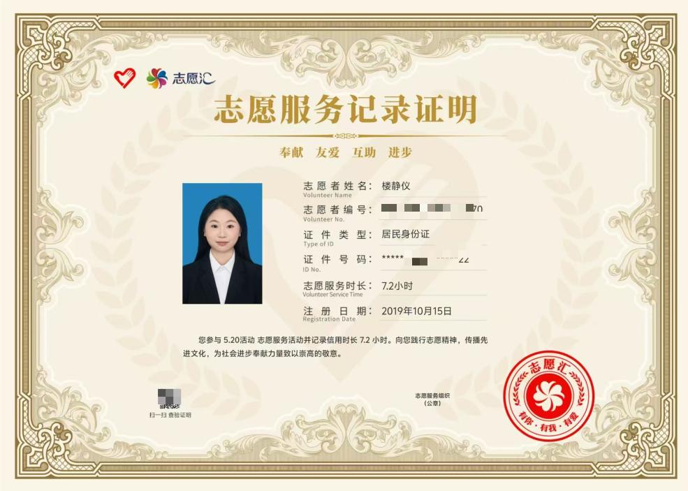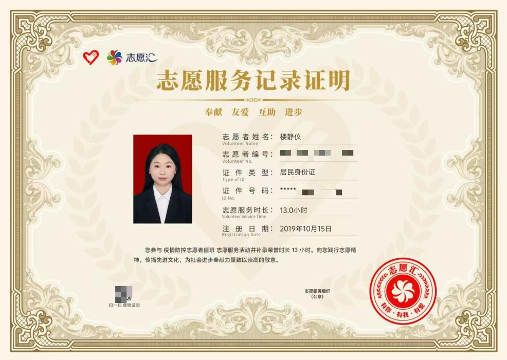 作为班级的权益委员,她负责班费的管理,作为学生组织的成员,她负责策划案的编写与校内其他组织的友好交流,同时,配合老师同学开展活动,累计协助组织活动20余次,活动累计参与人次达3000+。星星之火,汇聚成热情之光。在这个过程中,她获得了优秀干事,优秀部长,先进个人等荣誉称号,且遇到了许多志同道合的小伙伴们。她同他们一起脚踏实地,散发属于他们的青春实干奋斗之光。