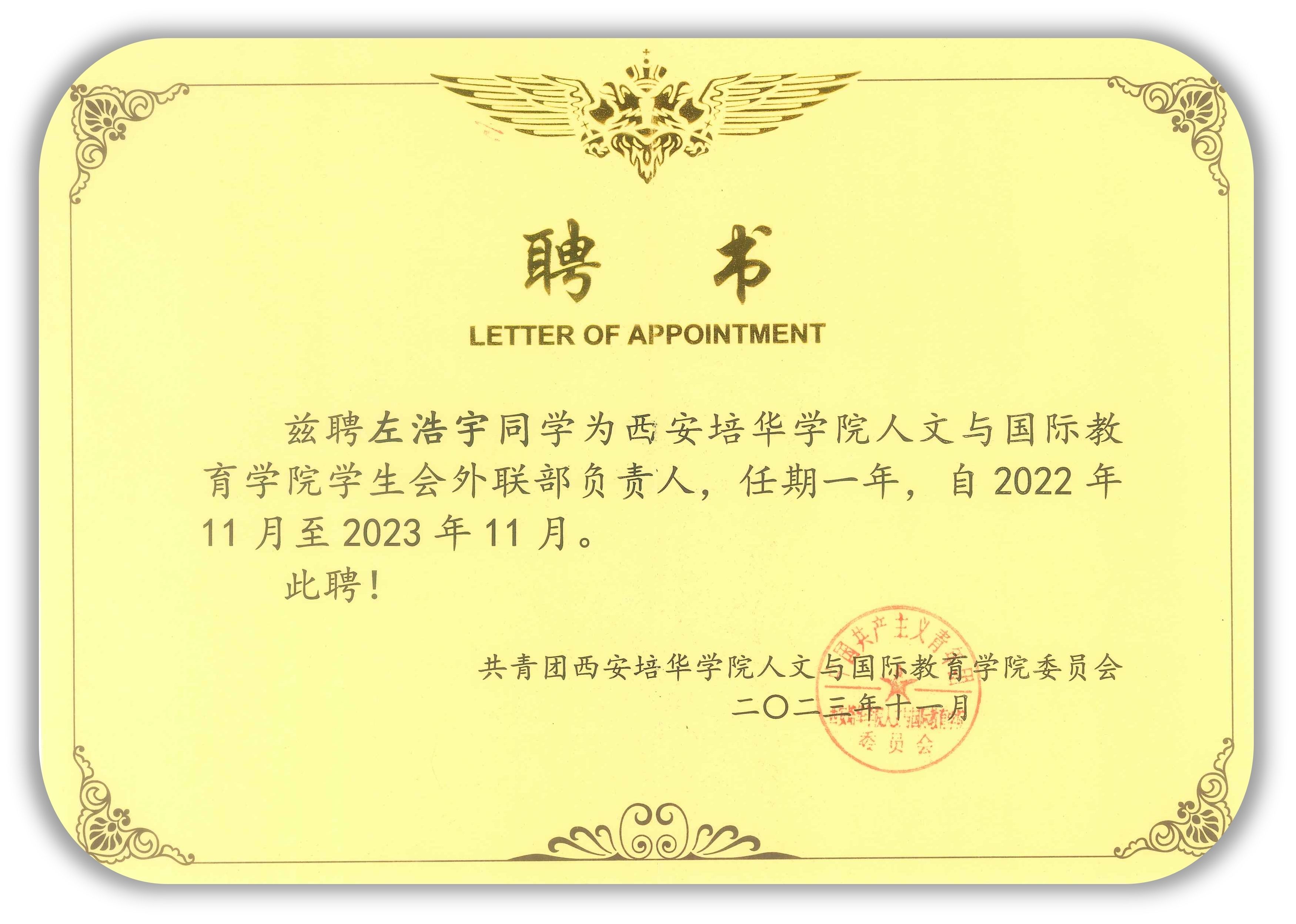 在法学学习的征途中,他始终坚持以习近平新时代中国特色社会主义思想为指导,不断提升自己的政治理论水平和思想觉悟、不断强化自己的法律意识和社会责任感,立志成为一名有温度、有深度、有担当的法律人,立志做一名有爱的培华人。在2022年12月,加入了中国共产党,时刻以党员标准严格要求自己,现在担任法学2101班班长、法学院党总支学生工作部部长、法学院学生第一党支部组织委员,带领班级同学积极创建“姜维之班”,所在班级荣获“姜维之班”优秀创建班级、先进班集体等荣誉称号,本人先后荣获优秀共青团员、优秀学生干部、优秀共产党员、党员之星、新时代好青年等一系列荣誉称号。