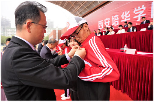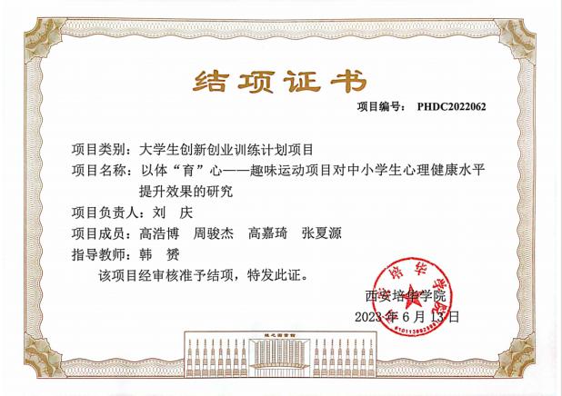 他利用此前在大学生创新创业的项目为载体,通过实践进行体育,心理双育人,给西安电子科技中学的学生带去快乐体育,健康体育,也使自己成功地从学生向老师转变。