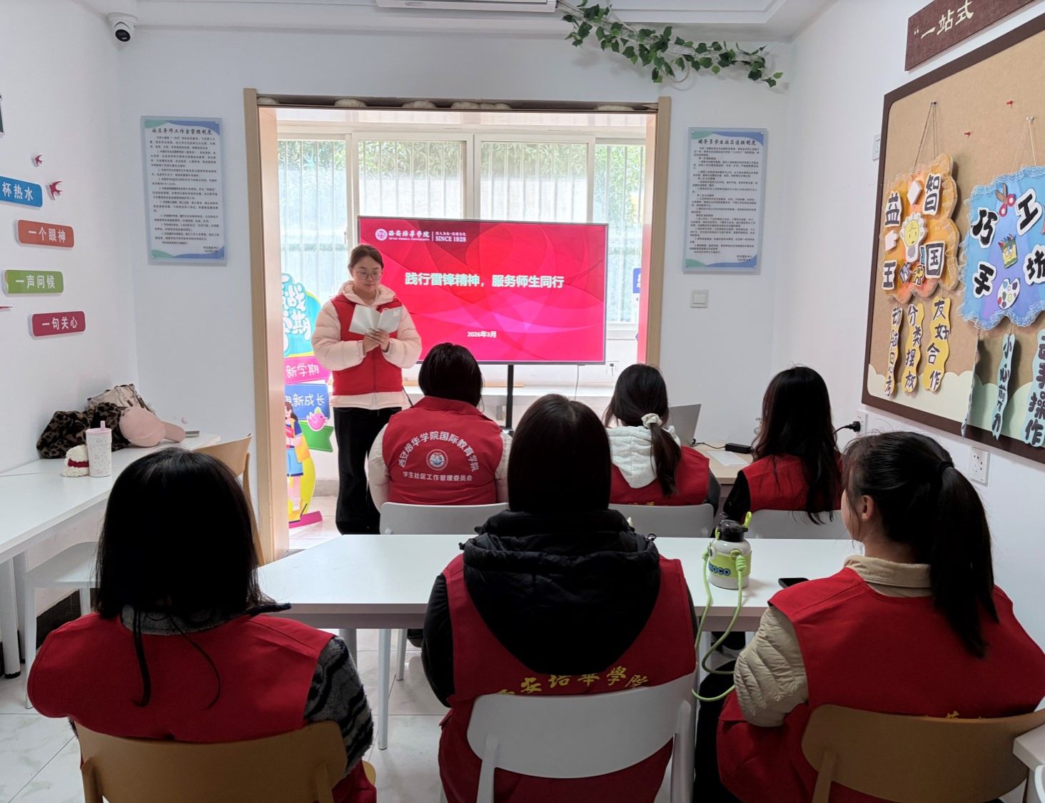 国际教育学院组织党员学生集中学习雷锋精神,凝聚思想共识,开展党团活动室清洁工作,彰显党员责任担当。