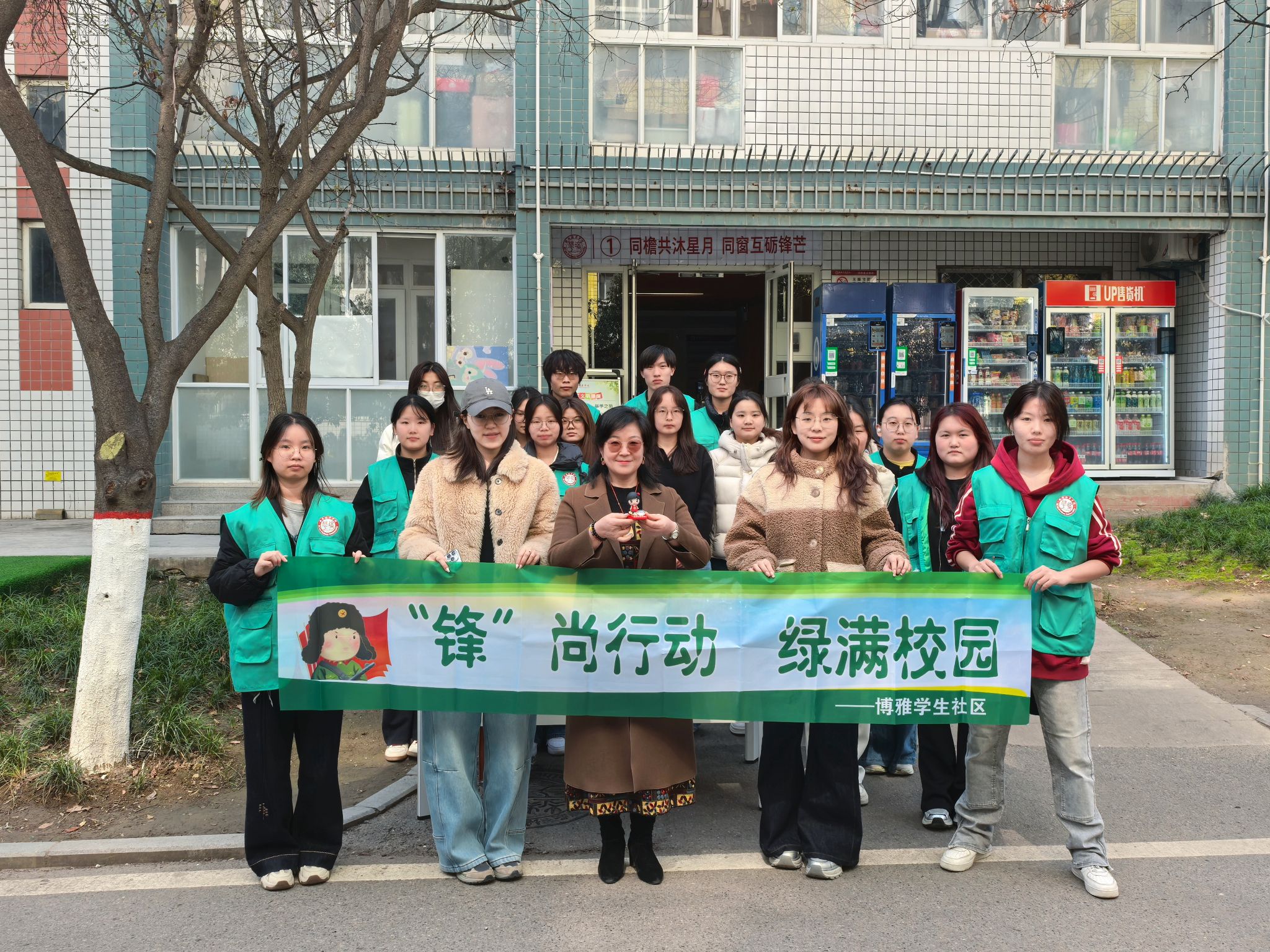 “锋” 尚行动启新程,绿满校园显担当。文学院教学副院长乔芳带领博雅学生社区师生,聚焦楼道卫生死角与垃圾杂物,细致擦拭公告栏、门窗等公共设施,让社区环境焕然一新。