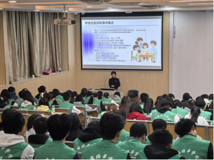 至善学生社区德育导师冯莹老师为同学们培训学生社区突发事件应急处置。本次活动旨在通过系统的课堂学习培训同学们在面对社区突发事件应对能力。在学生社区中,突发事件的应急处置是保障学生安全的重要环节。冯莹老师指出应急事件呈现出的特点有:突发性、紧迫性、复杂性、急需性,应急处理事件包含公共卫生类、治安事件类、自然灾害类、心理危机类等几个大类,学生干部在处理时也应按照规定的应急响应流程进行处理。