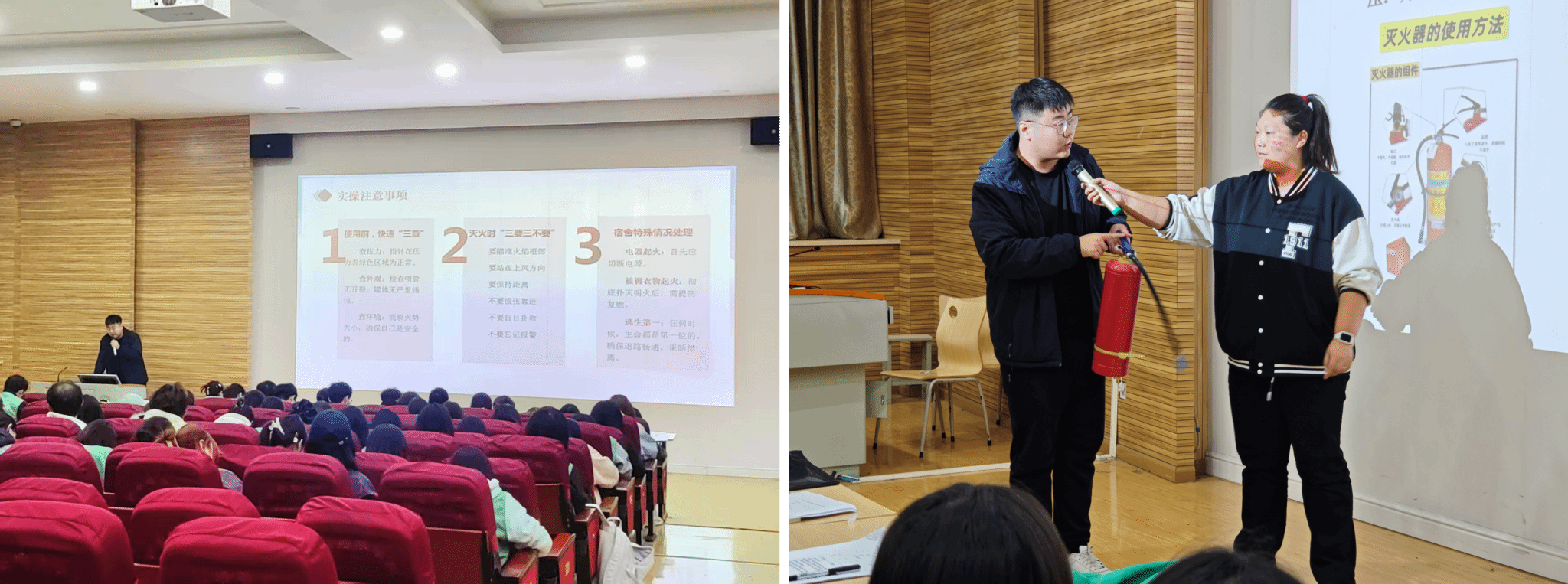安全是社区工作的底线。格物学生社区负责老师石戎睿星,聚焦防火、防电、防盗、防骗四大核心领域,通过案例分析、隐患排查等方式,让学生骨干掌握实用的安全管理技能,助力构建平安和谐的社区环境。后勤服务中心消防干事王权为学生进行“突发事件应急处置”及灭火器的使用实操培训,切实提升应对突发火情的应急处置能力。