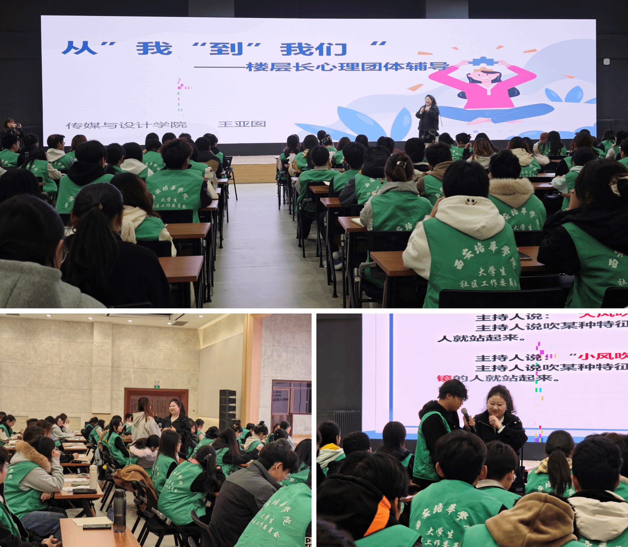 传媒与设计学院王亚囡老师以一场生动有趣的素质拓展破冰团辅活动拉开培训序幕。通过互动游戏、小组协作等形式,使来自不同社区、不同楼栋的学生骨干快速打破隔阂、增进默契,为后续的培训开展及工作协作奠定了良好的团队基础。