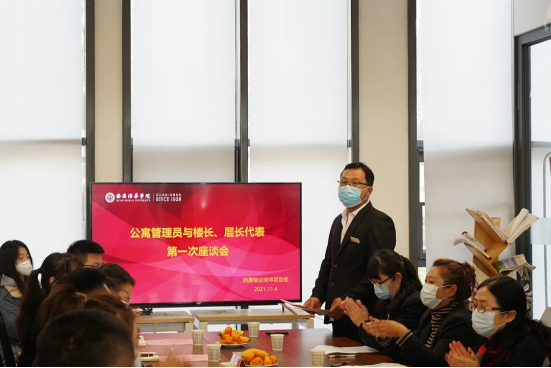 会上,鼎晟物业培华项目部经理庞磊先向大家介绍了学生公寓的各项服务内容。在学生提问,公寓管理员解答问题环节,就公寓的日常事务办理流程,安全检查,晚归夜不归宿报备流程,灭火器的使用,公寓闸机的使用规范及突发情况的处理流程,各管理员代表都做了逐一解答。
