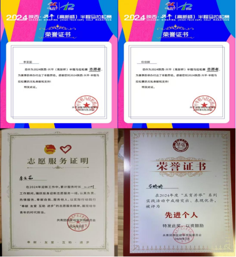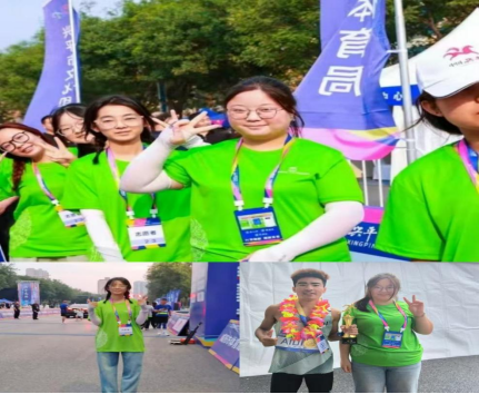(宿舍成员任佳丽,李亚茹在兴平参加马拉松志愿服务)