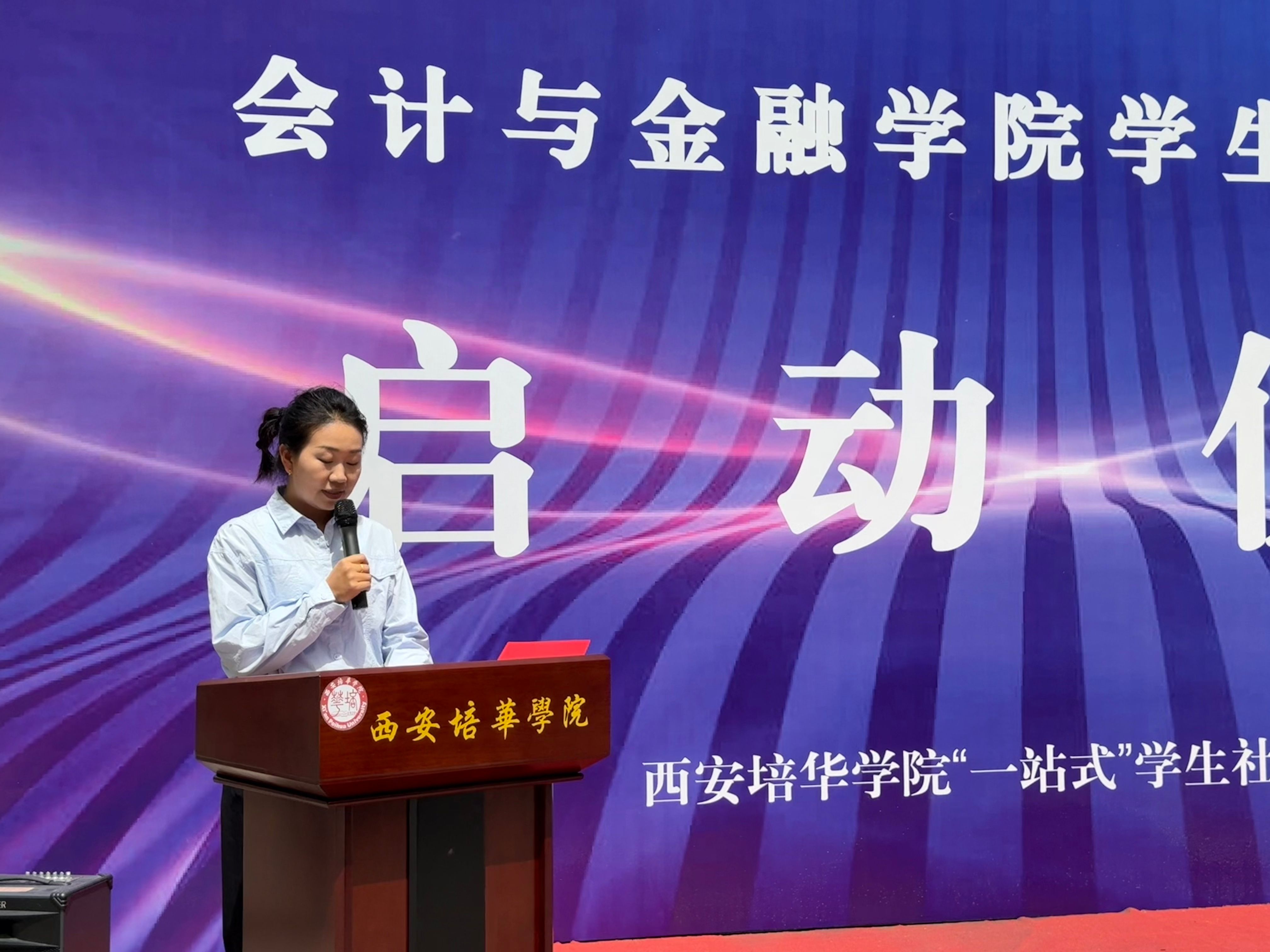 周文敏同学回顾了社团在过往举办的模拟交易训练、行业讲座等专业活动开展情况与亮眼成果,同时也对未来社团进社区后的活动规划、专业服务方向等内容进行阐述,展现了金融社团蓬勃发展的决心与活力。