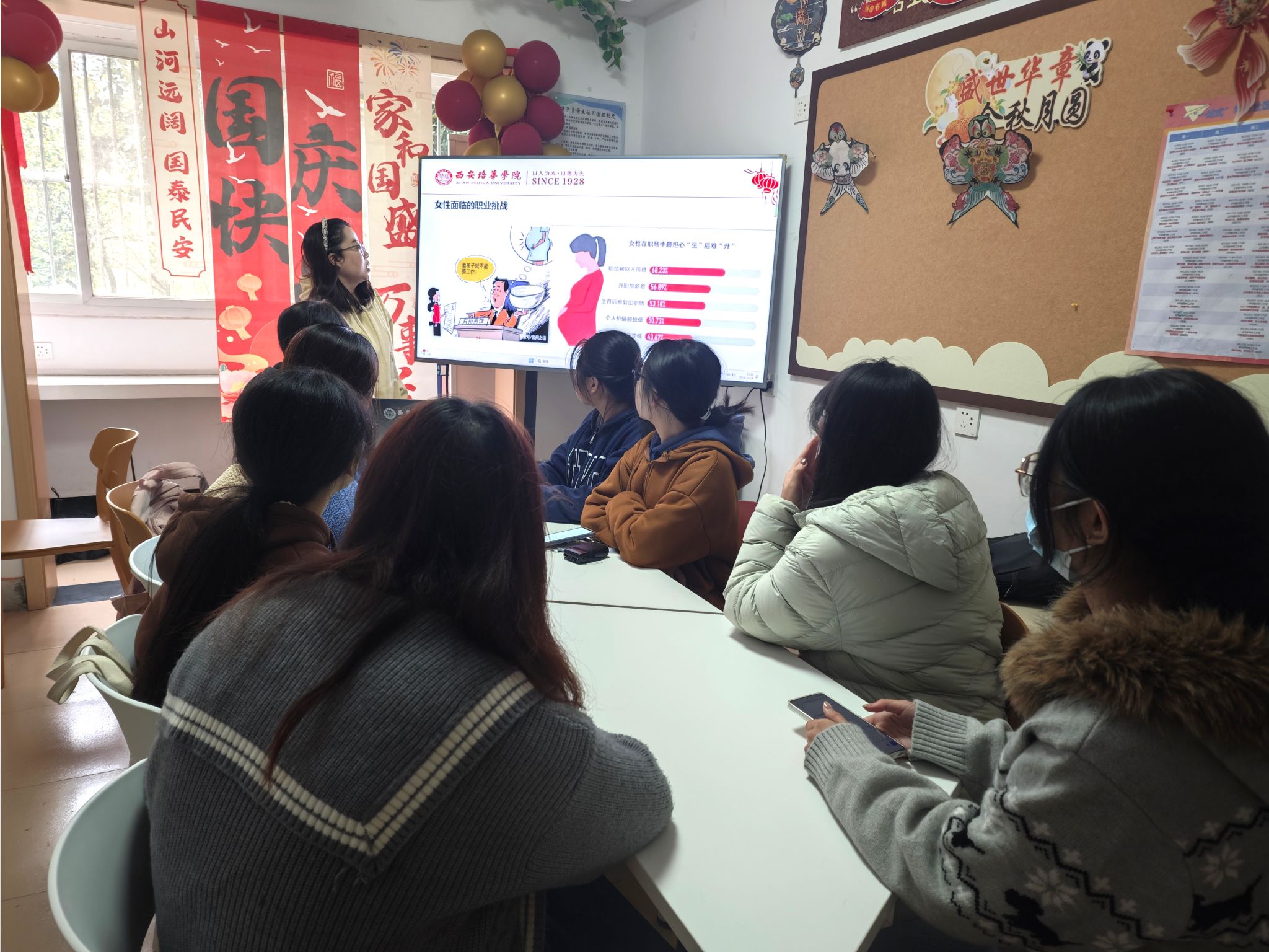 社会性别与健康主题交流聚焦女大学生身心发展关键问题,女子学院教师张文悦从社会性别平等认知、女性生理健康养护、心理健康调适三个方面进行专业讲解。针对传统性别观念中对女性的刻板印象,结合社会热点案例,引导同学们打破性别偏见,树立“性别平等、自尊自信”的自我认知,鼓励大家在学习生活中勇敢追求自身价值。