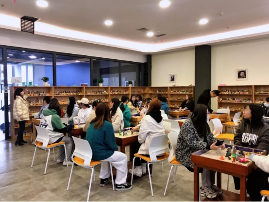 各小组创作完毕后,吕老师引导大家从各个角度仔细、认真观察小组成员共同创造的沙盘画面,最后吕老师进入每个小团体中,逐个引导来访者体验整个沙盘,引发来访者的深度思考,请同学们分别分享了自己的感受和体验,使整个活动达到高潮。