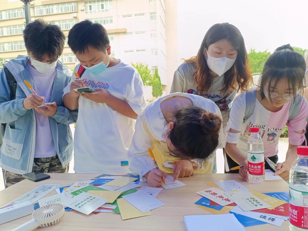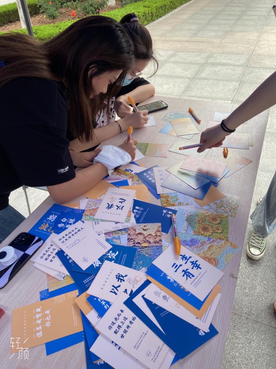 明信片漂流则是呼吁同学们在工作人员处领取明信片,或由工作人员进行发放,让同学们在明信片上写下自己内心的话语,亲手投递给邮递员,让这些信件像漂流瓶一样,可以寄予陌生人鼓励,寄予自己宽慰。路过的同学们都十分乐意写下自己对心理健康日的想法看法,和自己心中的小困惑、小郁闷、小秘密,给此次活动带来了很大的意义和收获。