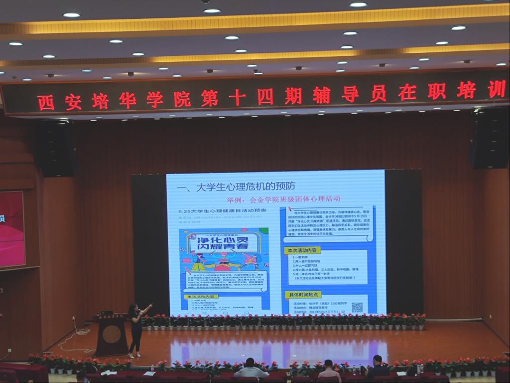 随着社会的快速发展和竞争的加剧,加上连续几年疫情的影响,导致存在心理危机的人数逐年增多,且愈加复杂。心理危机防不胜防,是社会的痛点,更是高校心理工作的爆点,高校心理健康教育工作面临着严峻的挑战。为使我校心理危机预防干预工作更加细化,深入化,进一步提升辅导员队伍的心理危机预防和干预能力,2022年7月19日上午10时,学生潜能发展中心吕改莲老师在校图书馆报告厅就大学生心理危机预防干预进行了专题培训,学工部部长蔡亮、学工部副部长姚斌、权勇太、学生潜能发展中心主任韩赟、各学院主管学生工作的副院长、全体辅导员及学生潜能发展中心等百余名老师参加了培训。