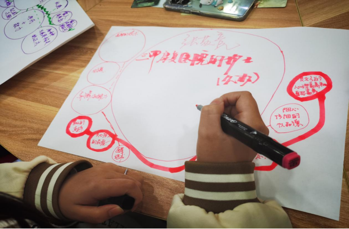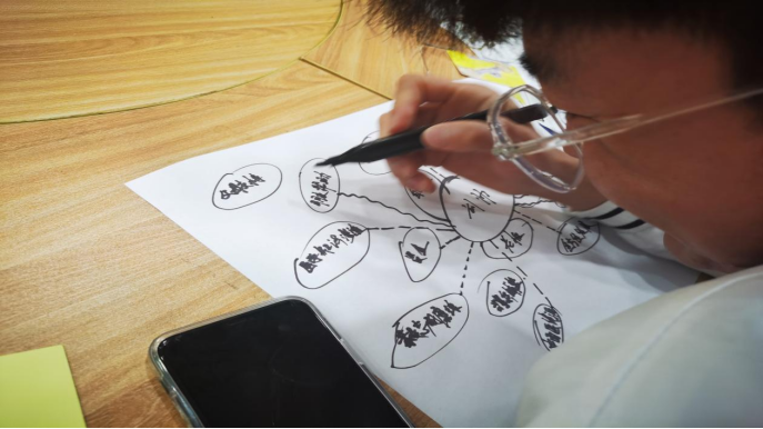 团体成员根据锚定的职业目标,分析当下的能力,包括已经拥有的、有待提高的、以及需要借助外力和资源达成的。同学们通过自己绘制的导图清晰展现出自己提升能力的途径和方法。