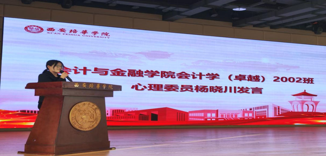 会计与金融学院2021会计学02班心理委员杨晓川作为学生代表发言,该生对心理委员的日常工作及重要意义进行总结,并表示对新一期心理委员的培训充满期待。