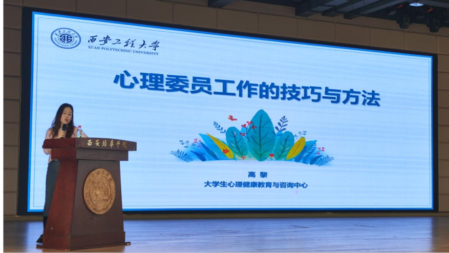 会中,由西安工程大学心理健康教育与咨询中心高黎老师进行主题讲座,高黎老师根据多年来的从教与心理咨询经验从心理委员工作的技巧与方法角度对学员进行指导,学员从讲座中了解了心理委员制度的发展及心理委员所必备的助人技能等。