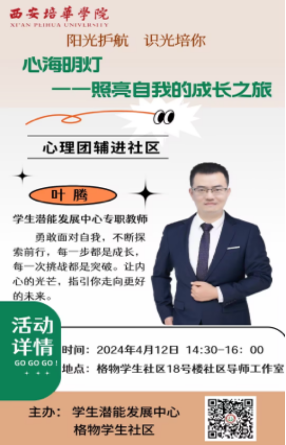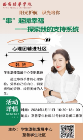 为了有效推进我校大学生心理健康教育工作的优质建设,学生潜能发展中心的8位专职教师自4月10日至4月17日,积极推进了一系列心理团辅进社区的活动,以此助力“一站式”学生社区综合管理模式的建设,并对学生予以关怀和帮扶。其目的在于提升学生的心理素质与自我调节能力,为大学生未来的发展奠定坚实的基础。