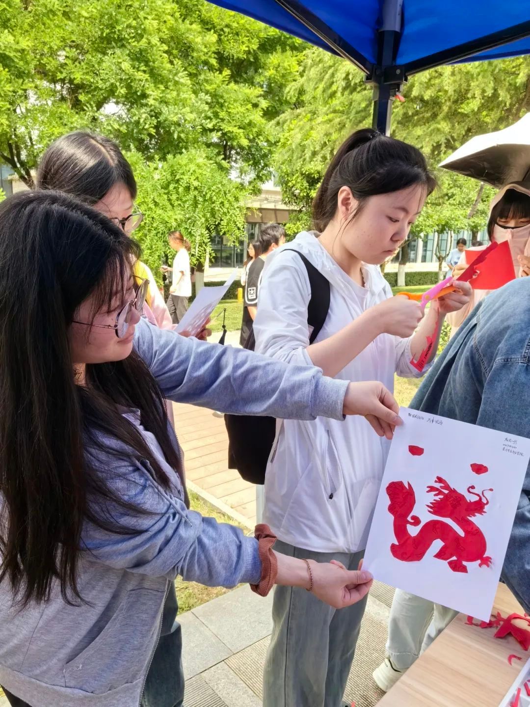 该活动通过表达劳动创造美,劳动感恩美的理念,感恩劳动美。学生制作剪纸并将剪纸作品赠予劳动者,借这种活动形式来培养学生的毅责任感及感恩意识,让学生在剪纸创作中学会珍惜劳动成果,学会感恩身边人。