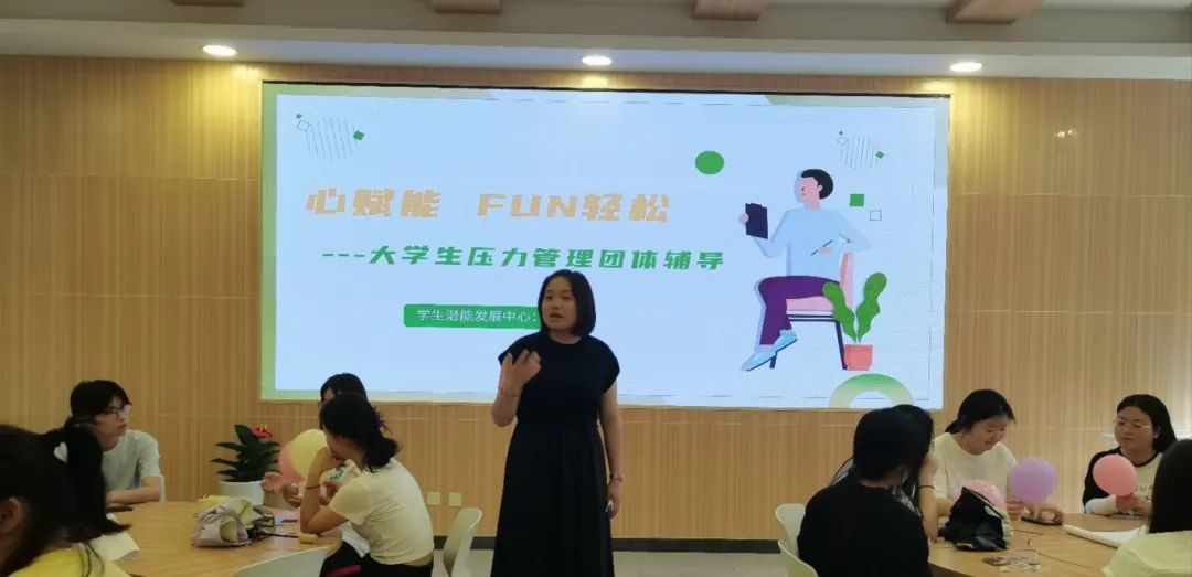 为帮助大学生缓解心理压力,调节情绪,促进身心健康发展,5月15日下午学生潜能发展中心在恒友楼一楼团体辅导室举办了“心赋能FUN轻松-大学生压力管理团体辅导”。本次团体带领老师为学生潜能发展中心专职教师王旭。