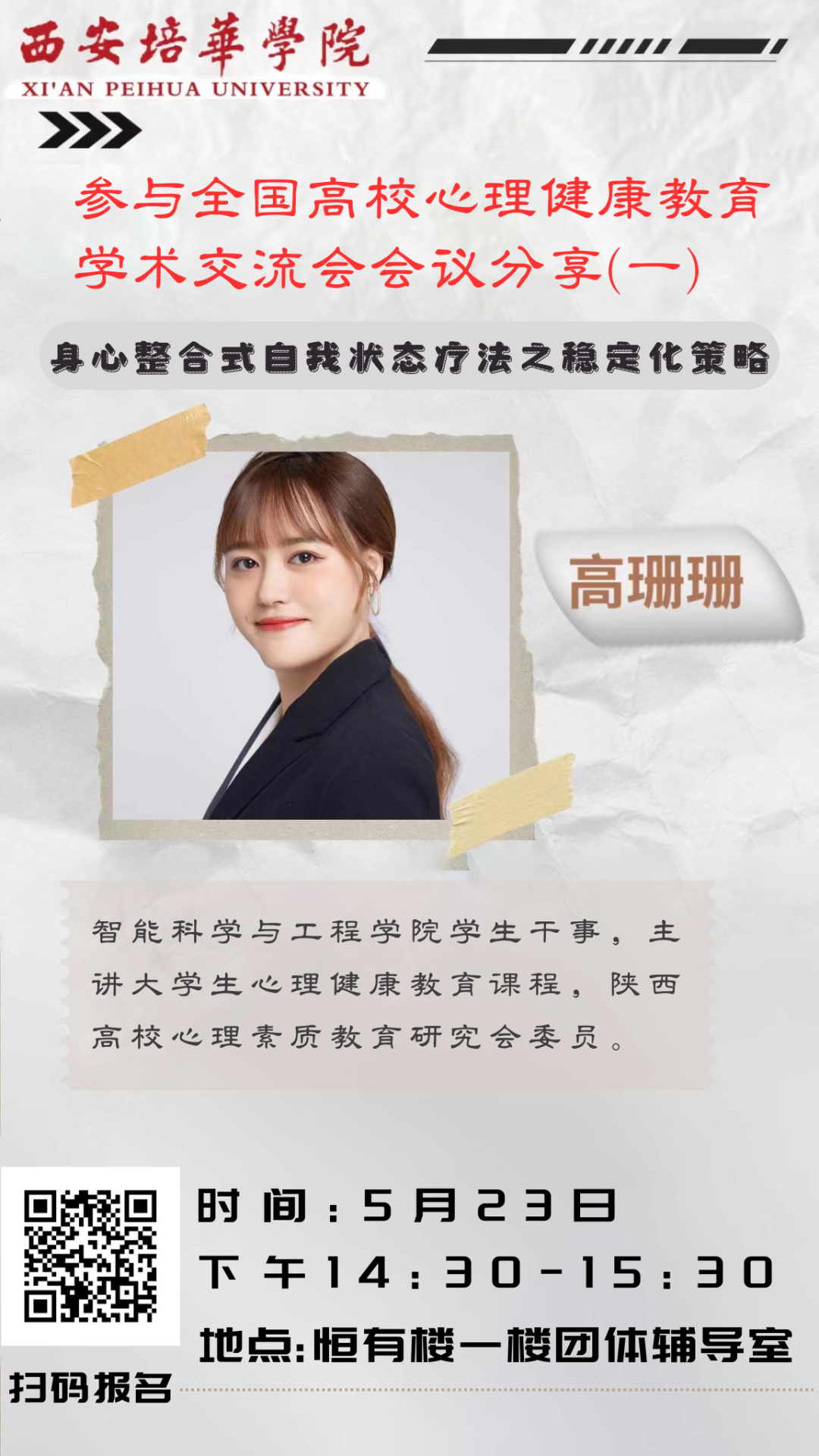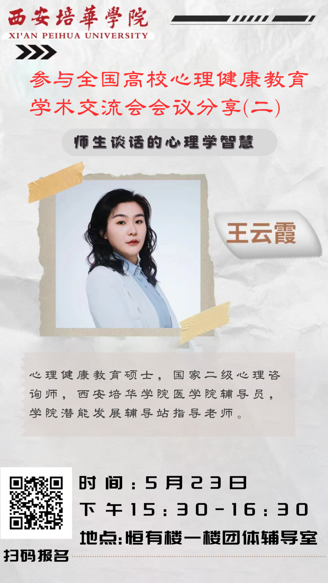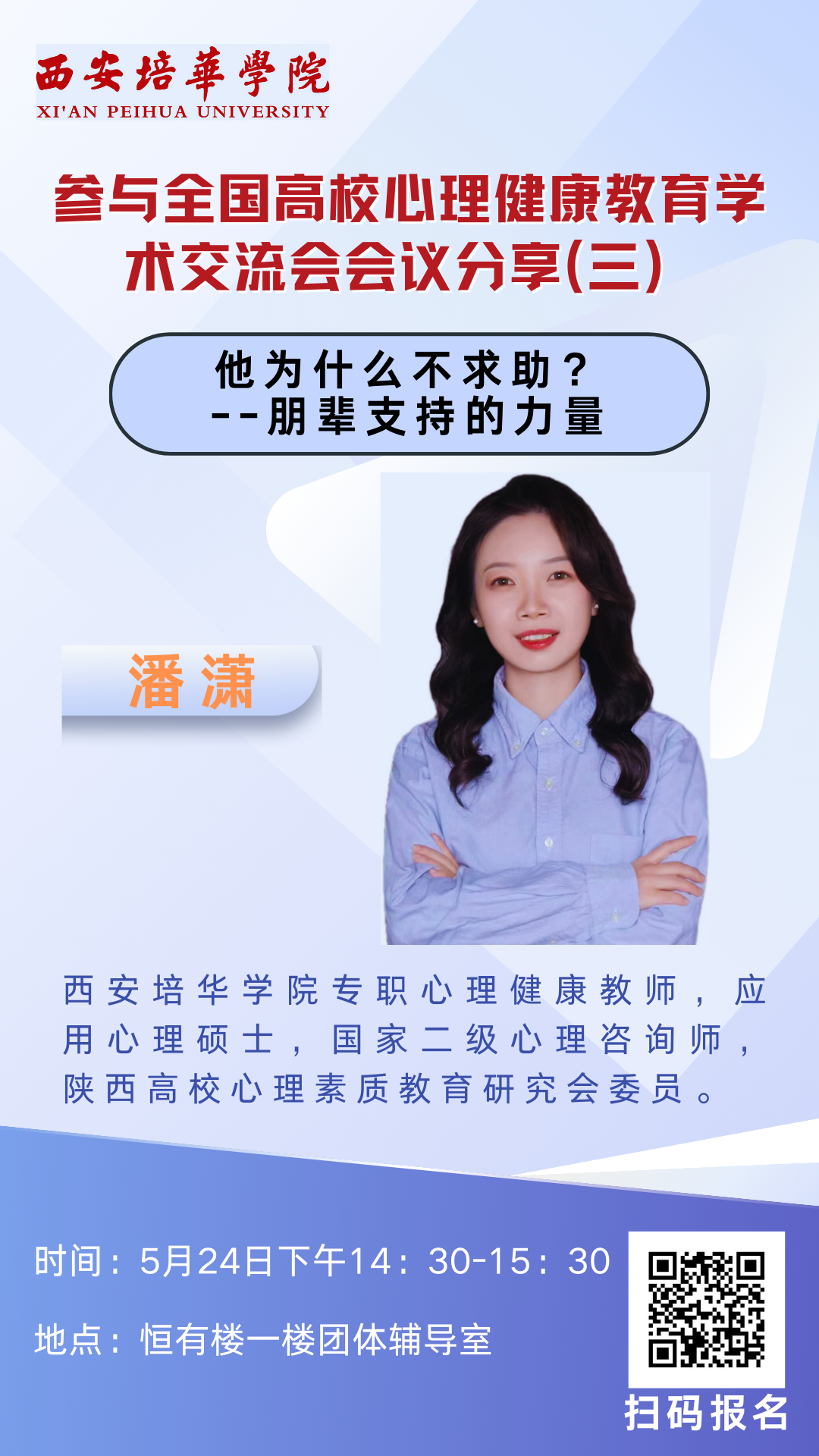 为了帮助我校从事心理健康教育工作的教师明确工作目标、更好的为学生服务,参与第七届委员会第三次会议暨2024年全国高校心理健康教育学术交流会议的教师潘潇、辅导员高珊珊、王云霞、任亚婷于2024年5月23日-24日在恒友楼二楼督导室、知爱室完成相关分享。