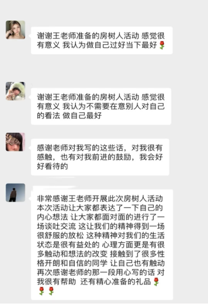 成员二∶这样的活动可以打开自己的内心世界,在聆听他人独白的过程中,可以取长补短,结合自身的情况寻求改变。