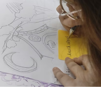 在带领老师的指导下,每位成员在A4纸上创作房树人画作,要求画作中必须具备房子、树、人三要素,其他要素例如花草、星月等都可以自由添加,人物避免火柴人形象。每位成员都能够用心作画。带领老师收集每位成员的画作并逐个分析,将解读内容写在纸上,作为内心世界卡留存。