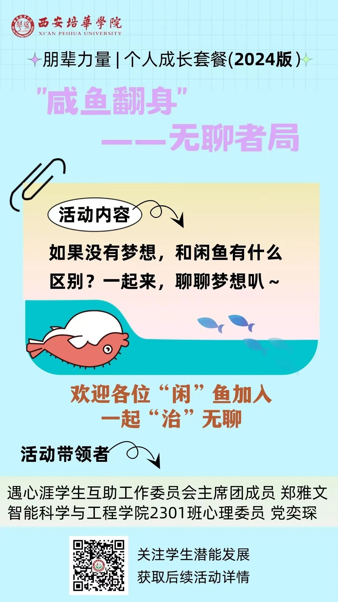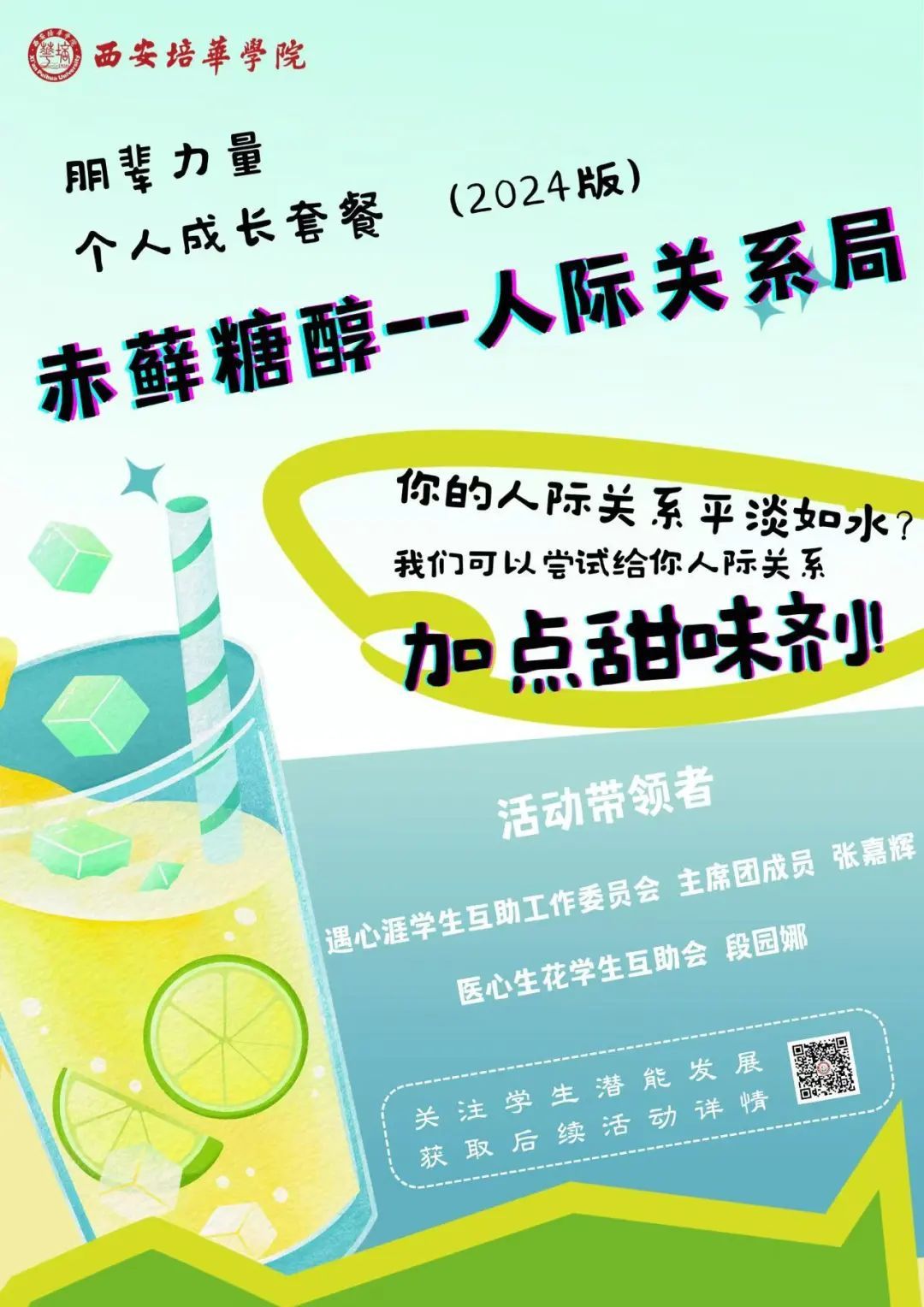 在换届大会现场,遇心涯发布了2024版朋辈个人成长套餐活动海报。以朋辈“微”力量,解成长之“小”烦恼,强心理之根基,迎未来之挑战!