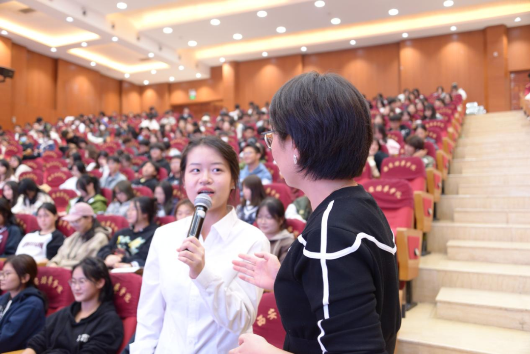 刘主任通过一系列轻松有趣的互动游戏,如属相对应动作、饮食习惯转向等迅速拉近了与同学们的距离,营造出一个轻松愉快的氛围。这些小游戏不仅活跃了现场气氛,也巧妙地引出了心理健康教育的重要性。同时分享了如何成为一名合格的“宣传员”和“支持者”。她提出了理性同理心、情感同理心和行动关怀三个维度并通过实际案例分析,教导大家如何有效地安慰他人,除此之外特别提到了关注高危人群的重要性。她列举了多种可能面临心理危机的情况,并提供了相应的应对策略。