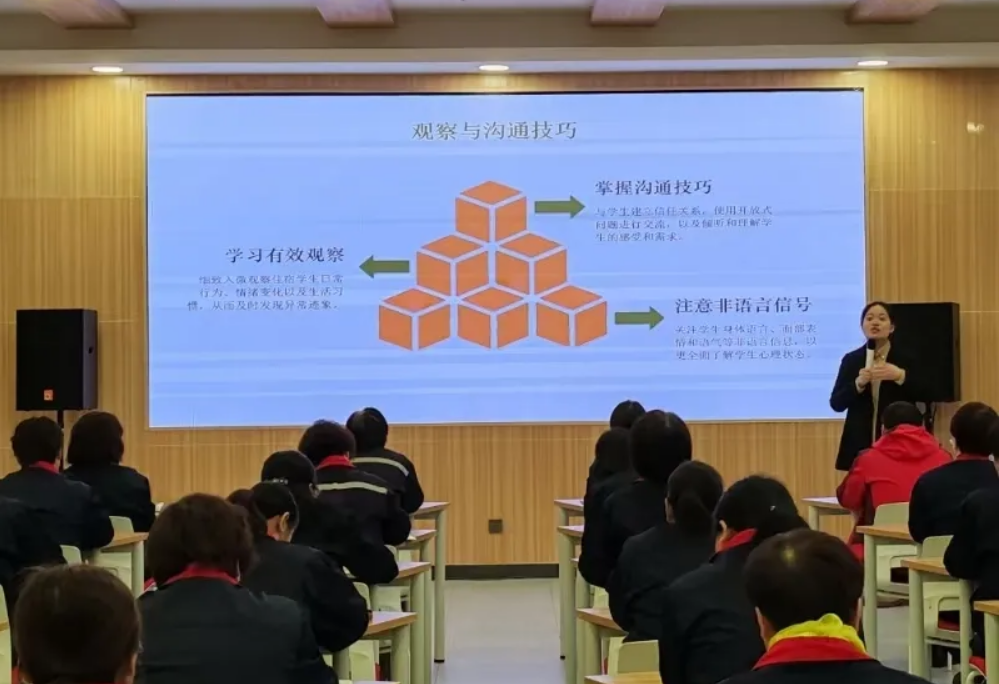 本次培训结合当下大学生心理现状与我校学生实际,详细剖析了焦虑、抑郁等心理问题在学生日常行为及情绪变化中的表现特征,由此强调了大学生心理危机现状和干预任务的艰巨性。培训内容主要围绕四个方面:一是阐述了社区生活导师是学生心理健康守护者的角色定位;二是危机信号识别的深度解读。通过沟通技巧、有效观察、非语言信号迅速察觉学生在言语、行为及情绪方面的异常表征,及时发现潜在心理危机风险;三是利用倾听、共情、认知调整等策略进行干预;四是关于心理危机干预的一些伦理道德要求,强调保密与生命至上的原则。
