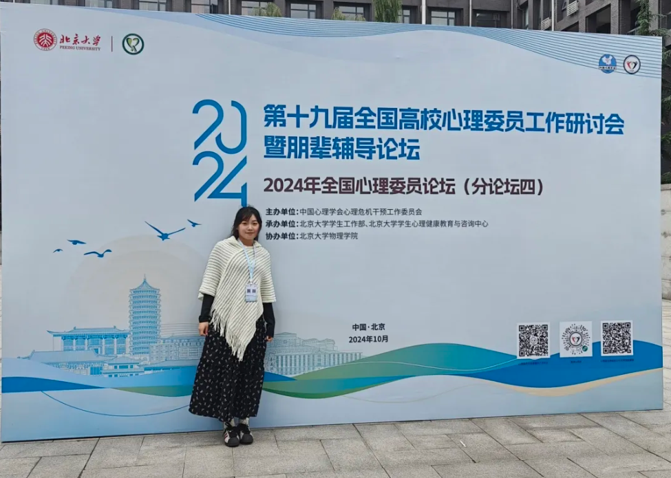 我是传媒与设计学院网络与新媒体2206班的心理委员殷琦,非常荣幸本次作为心理委员代表参与了在北京大学举办的第十九届全国心理委员工作研讨会。这次会议让我深刻体会到了心理委员的重要性,并学到了如何更有效地在班级和组织中开展有效的朋辈互助活动。接下来我计划在学院和班级根据不同需求、不同专业积极开展类似于情绪表情包、心理知识竞答等活动。我也将通过持续的学习与实践,更好地服务于每一位同学,为他们提供更加专业、贴心的心理支持。