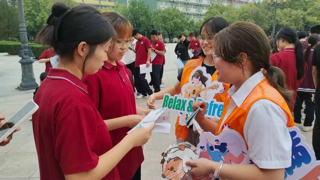 除此之外,校院两级朋辈组织联动为新生的心理健康保驾护航。遇心涯学生互助工作委员会联合会计与金融学院财经心涯学生互助会,在军训休息期间走进新生,与新生开展轻松互动,积极引导大家关注心理健康,并详细介绍校内外心理援助资源,帮助新生更好地适应大学生活。